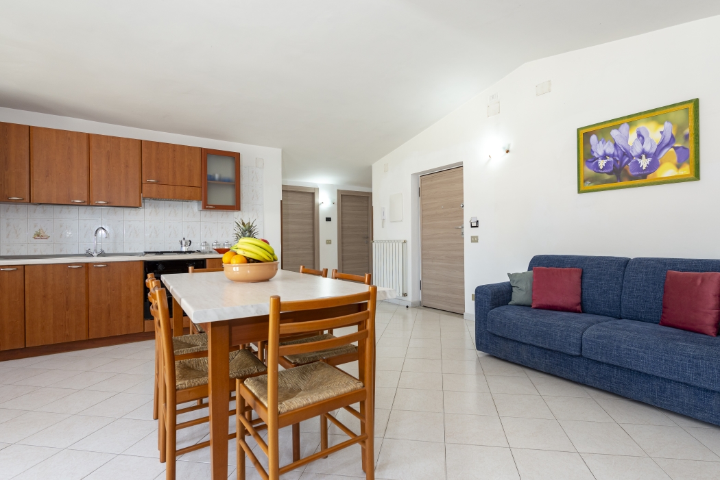 Vivibilissima mansarda di 70 mq con balcone panoramico. Situata al secondo piano è composta da una camera letto matrimoniale, una seconda camera da letto con 4 letti ed un soggiorno con balconcino, con divano e cucina.