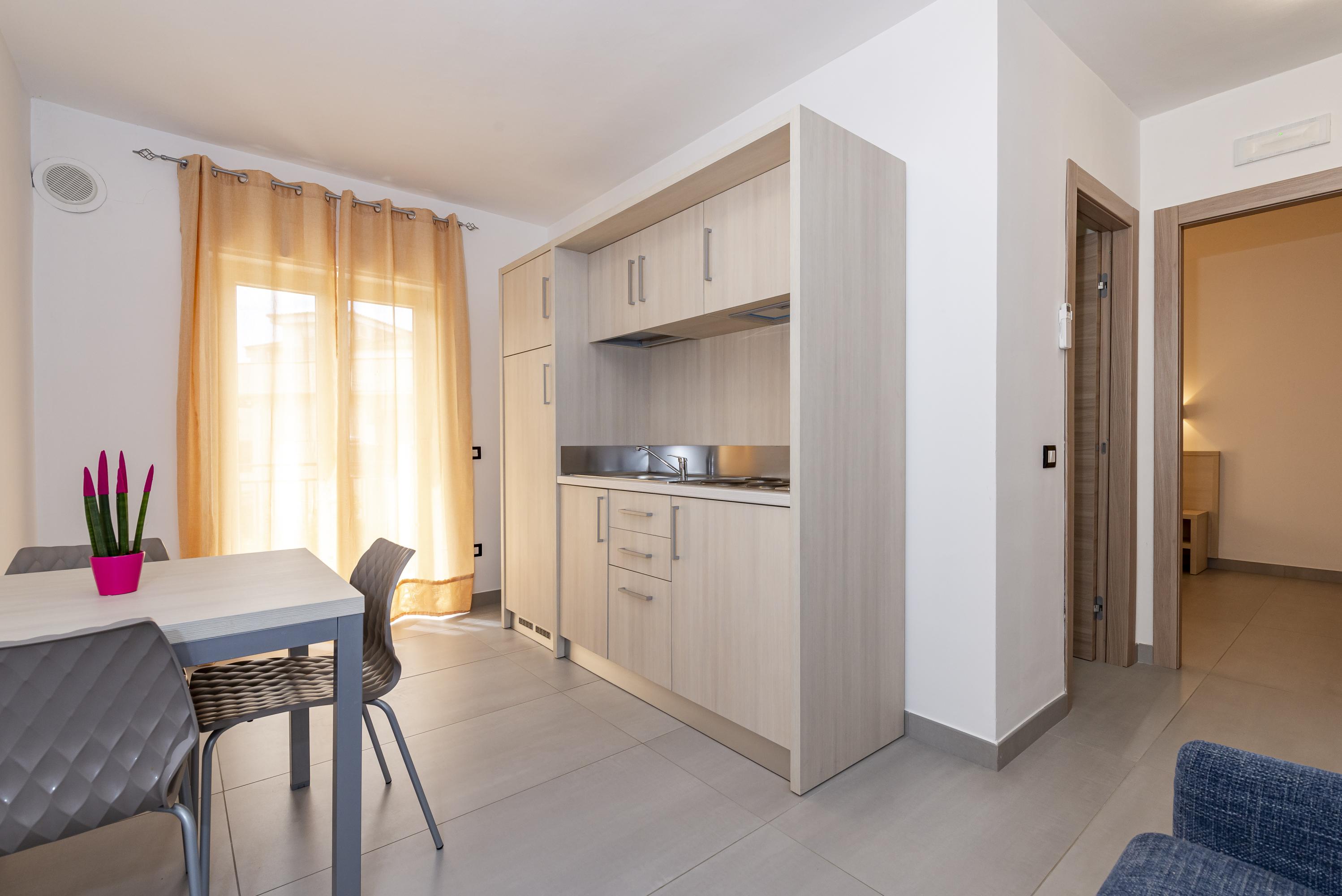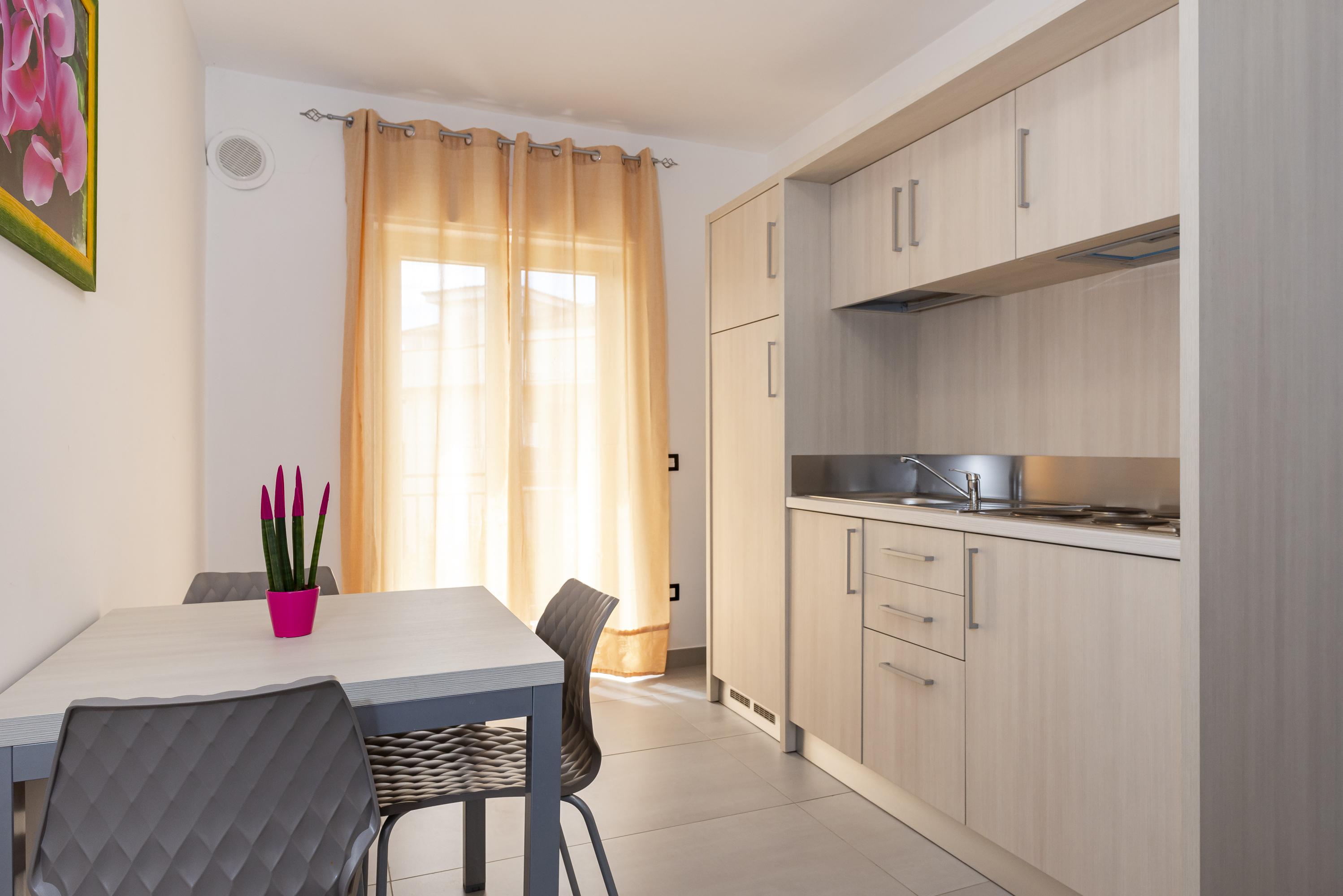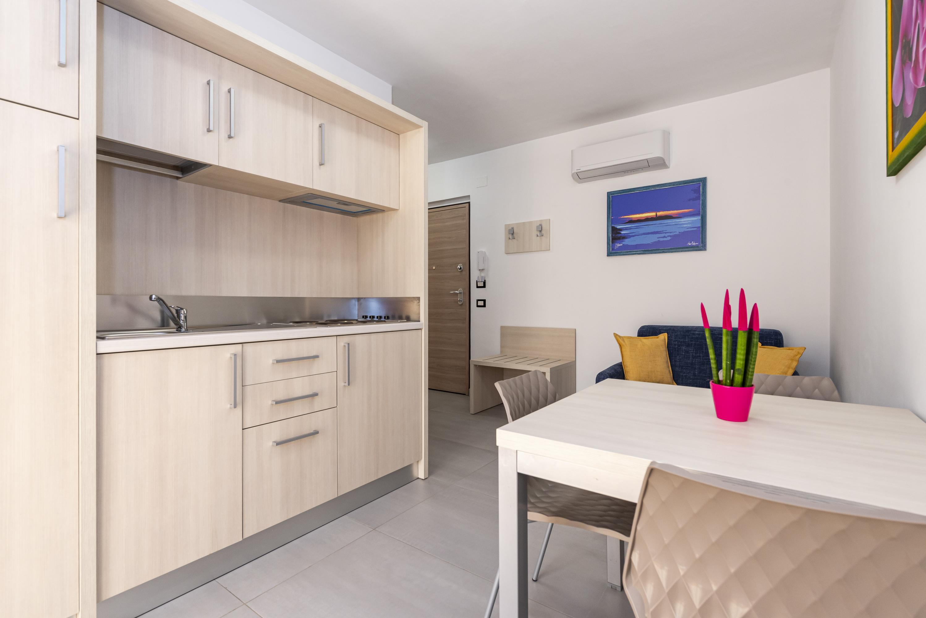 Gradevolissimo appartamento di 40 mq con 2 balconi. Situato al primo piano è composto da una camera letto matrimoniale ed un soggiorno con angolo cottura e poltrona letto.